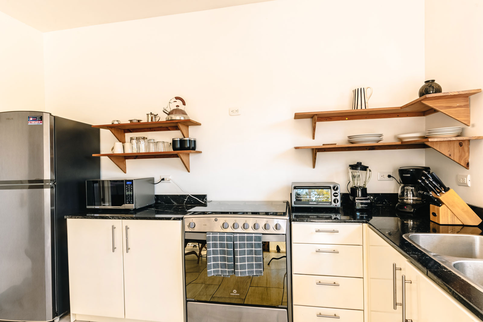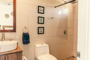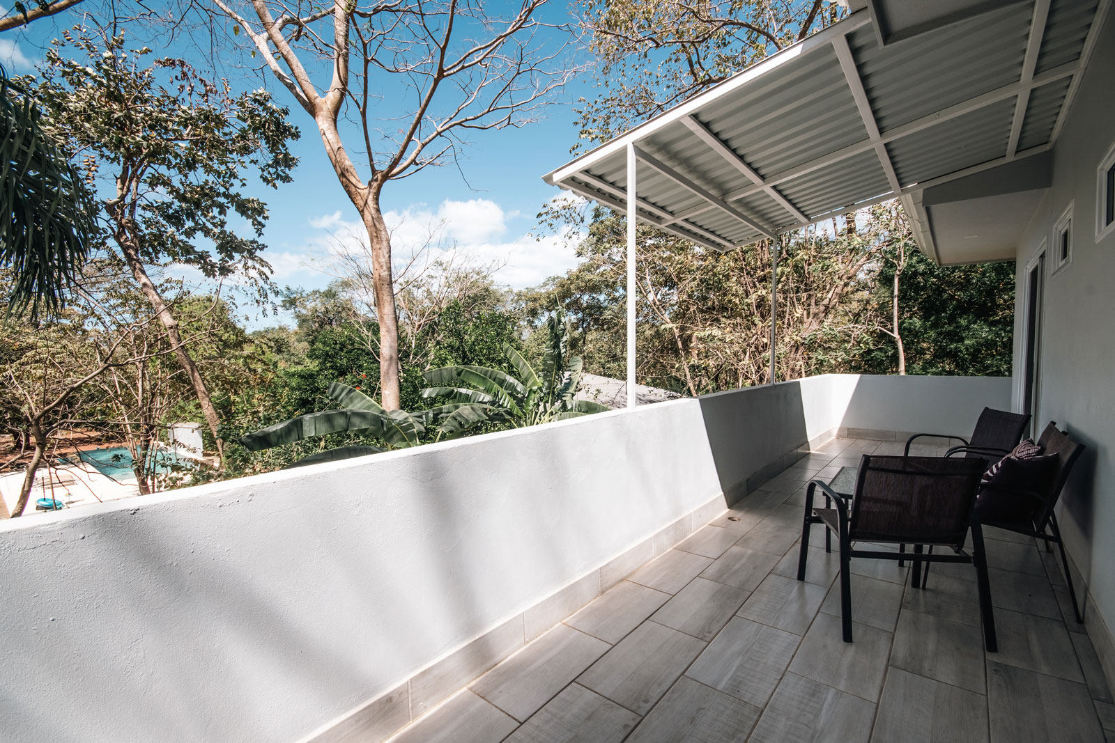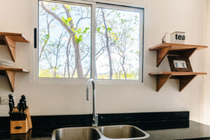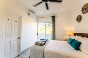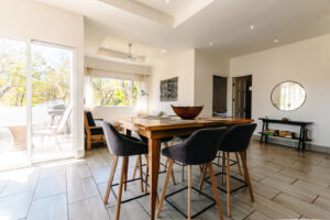Sliding glass doors lead to the east-facing balcony, complete with a propane barbecue and seating for two — perfect for a sunrise coffee or a sunset meal in the warm Costa Rican air. Imagine trading winter’s chill for a balmy evening barbecue, followed by a dip in the saltwater infinity pool — the essence of effortless tropical living