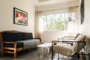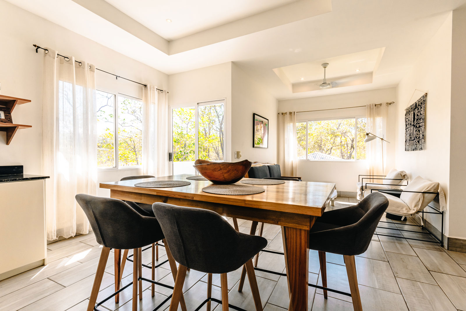 The Canopy Villa’s open-concept design seamlessly connects the kitchen and living room, creating a bright and social space ideal for conversation over dinner or evening cocktails.